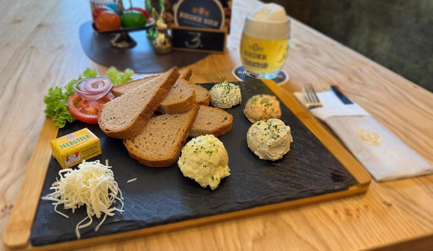 Wir legen Wert auf ehrliche Küche, wie sie früher bei Oma auf den Tisch kam: kräftige Aromen, hausgemachte Saucen, frisches Gemüse und Fleisch von heimischen Betrieben. Dazu servieren wir ein kühles Bier, einen guten Wein oder – je nach Lust – einen erfrischenden Most aus der Region.